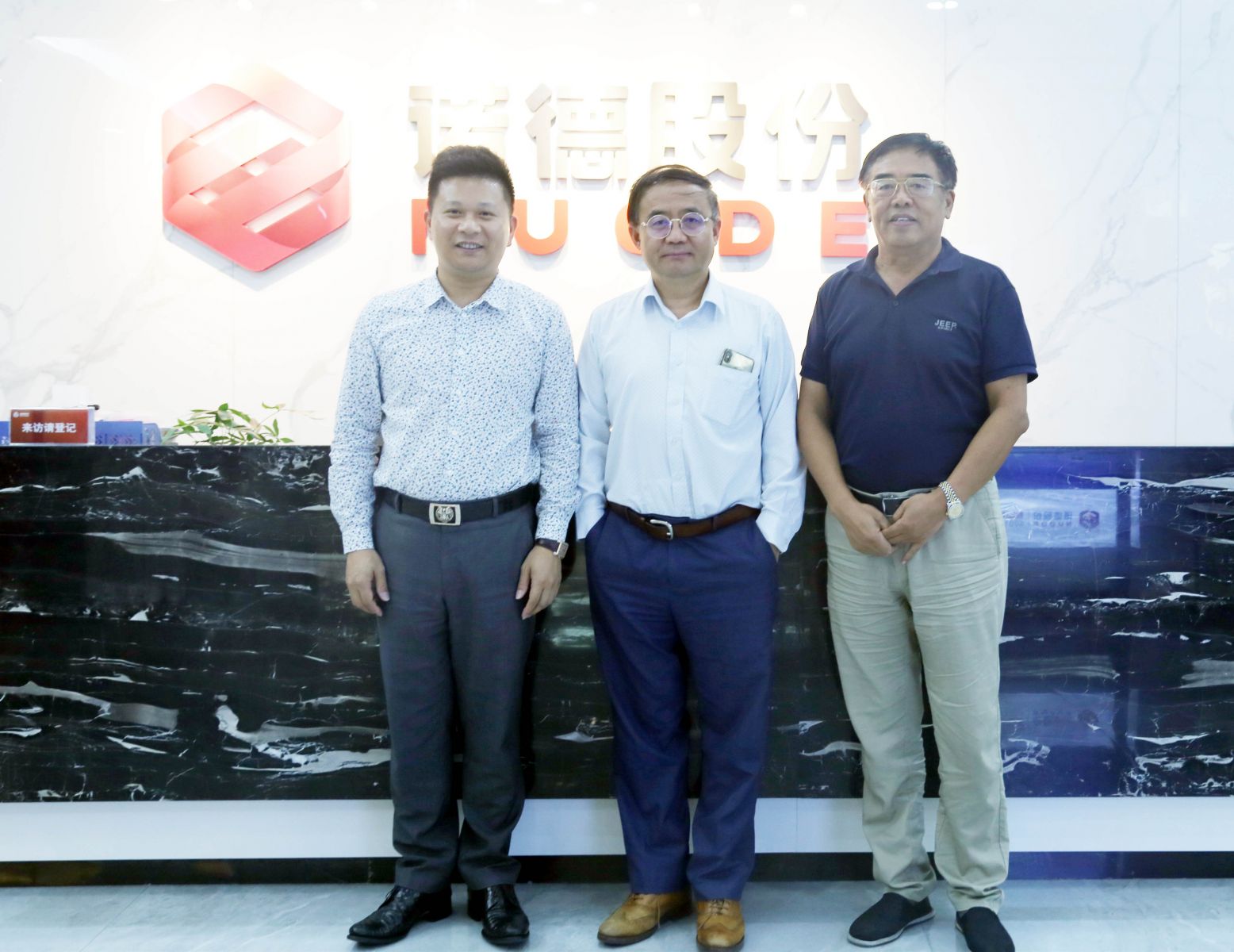 <圖為南方科技大學(xué)教授、澳大利亞國家工程院外籍院士劉科(中)與諾德股份董事長陳立志(左)、名譽董事長王為鋼(右)合影>