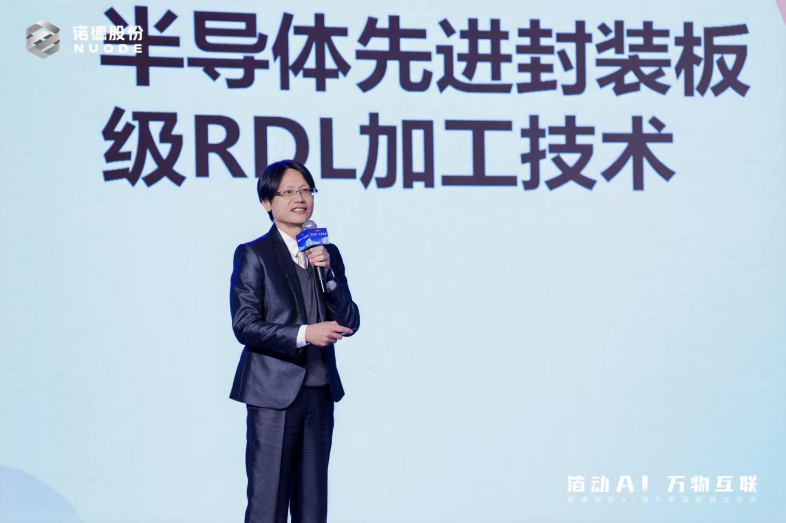 廣東諾沛芯材有限公司總經(jīng)理李家銘先生分享《半導(dǎo)體先進(jìn)封裝板級(jí)RDL加工技術(shù)》,他聚焦板級(jí)RDL(重布線層)技術(shù),解讀其如何打通PCB與半導(dǎo)體封裝的產(chǎn)業(yè)壁壘。他指出,在后摩爾時(shí)代,行業(yè)轉(zhuǎn)向依靠RDL(重布線層)等先進(jìn)封裝技術(shù)來提升芯片性能與集成度,而RDL制程的關(guān)鍵之一正是金屬線路的加工,其材料以電鍍銅為主。在此背景下,NPCF(微堆棧銅膜)系列產(chǎn)品作為一種高密度微增層重布電路銅箔絕緣層薄膜,帶來了根本性的變革:它并非簡(jiǎn)單的片狀材料,而是一種有機(jī)樹脂與銅箔結(jié)合的復(fù)合結(jié)構(gòu),這種設(shè)計(jì)確保了銅箔與樹脂間有更好的拉力及結(jié)合力,從而帶來更高可靠性和成本效益。