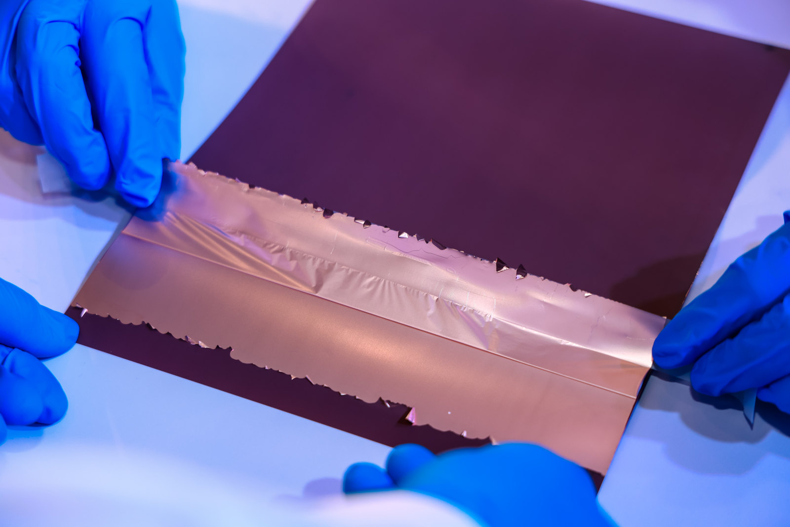 同時(shí)該款銅箔具備高剝離強(qiáng)度、載體易剝離等特點(diǎn),現(xiàn)場(chǎng)演示的剝離過程,畫面效果令人震撼!