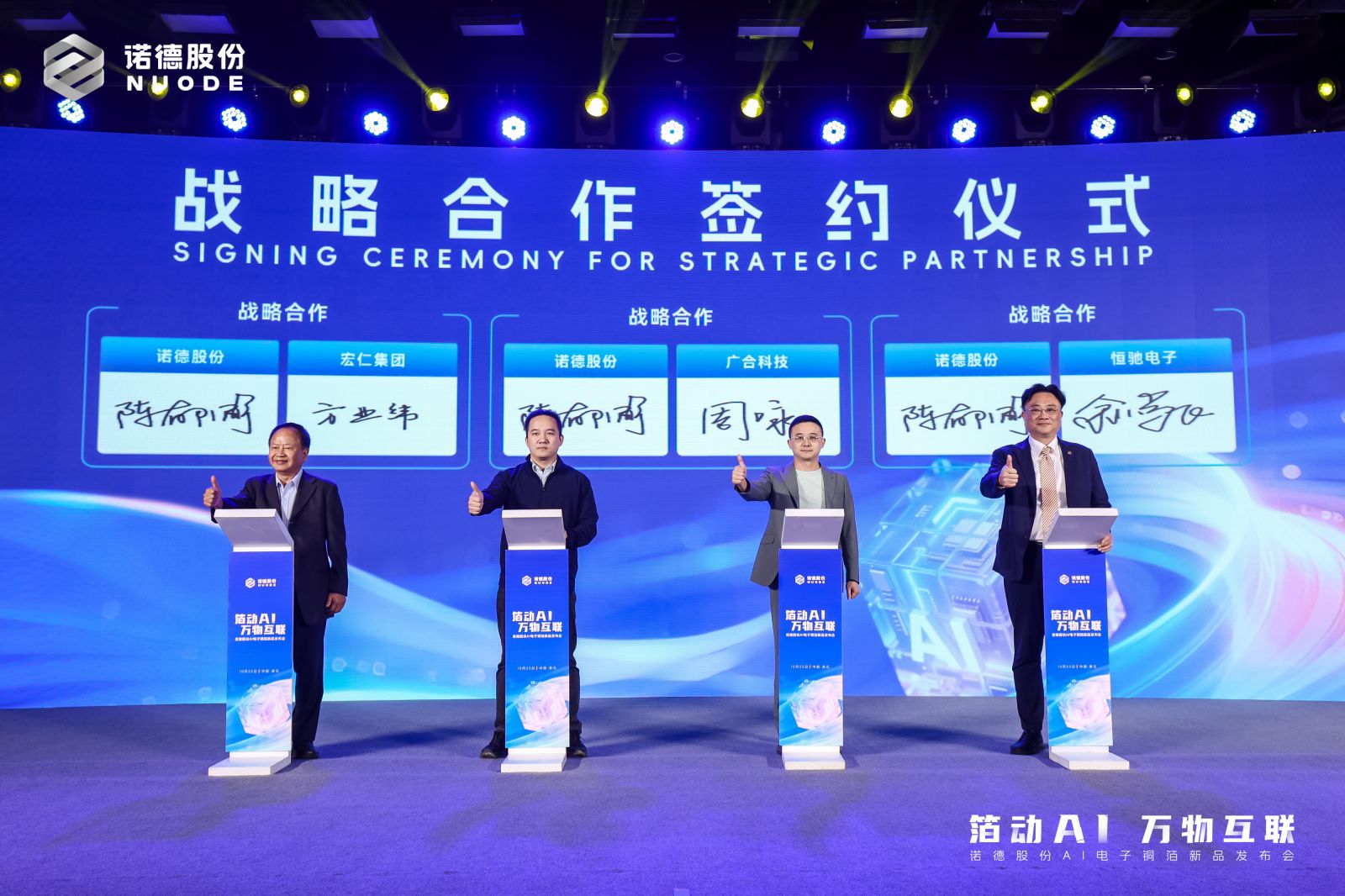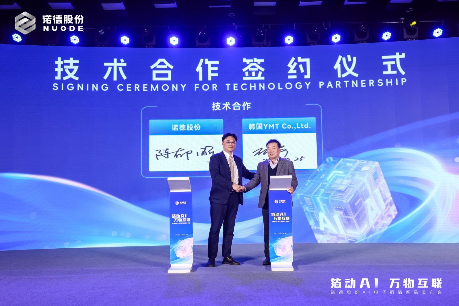 為推動(dòng)技術(shù)落地與生態(tài)共建,諾德股份在現(xiàn)場(chǎng)與宏仁集團(tuán)、廣合科技、恒馳電子簽署產(chǎn)業(yè)鏈戰(zhàn)略合作協(xié)議,強(qiáng)化從研發(fā)到量產(chǎn)的全流程協(xié)同;并與韓國(guó)上市公司YMT簽訂載體銅箔技術(shù)合作協(xié)議,共同推進(jìn)封裝基板用銅箔的技術(shù)迭代與國(guó)產(chǎn)化進(jìn)程。
